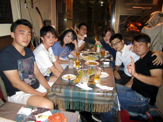明治学院大学の教え子たちと暑気払い飲み会。定員20人のクラスなのですが、そのうち3分の2は留学生。夏休み中につき、多くの学生が本国に帰省中ということで、今回はこぢんまりと7人で開催! |