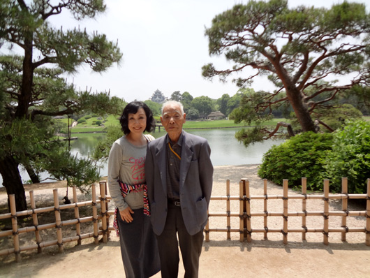 せっかくの岡山なので後楽園見物(村上さんと私の頭の間に写っているのは岡山城です) |