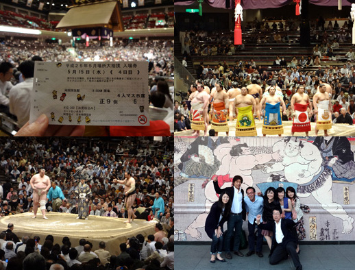 先日、生まれて初めて大相撲を観戦してまいりました。それも桝(ます)席で。4人用の桝が2つ取れたということで、8人で行ってきましたよ。