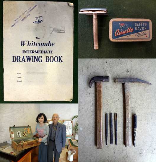 (以上、山陽女子高校所蔵)、右下は帰国後に立花さんが手作りした金槌一式(立花さんの私品)