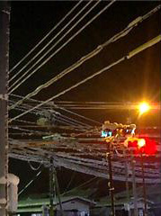 大晦日の夜に撮った実家付近の風景。街全体が雪化粧し、電線もずっしり重そうです |