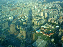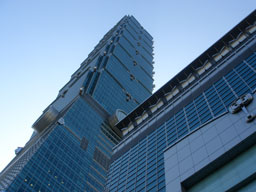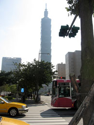 これが有名な「台湾101」ビル。全長508メートルは、エッフェル塔の約1.5倍。2006年の現時点で世界最高で、もちろんギネスブックにも登録されているそうです。 |