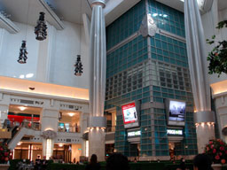 (左)下から見上げた「台北101」 (右)ビルの内側。思い切り天井を高くした大胆なデザインです