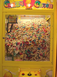 街で見かけたUFOキャッチャー。右は拡大写真。「台湾的」な光景ではありま