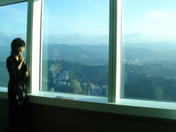 「台北101」の展望台からの風景。右の写真に映った影を見ると、「台北101」の高さが一目瞭然ですネ。