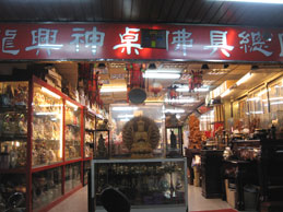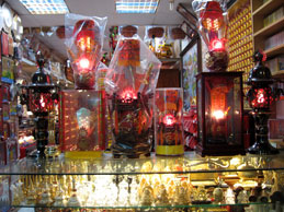 仏壇仏具街を散策中、日本の仏壇街ではちょっと見かけない不思議な一品を目にしました。左上の写真に移っている焼却炉のような物がそれですが、これ、一体何だと思われます?