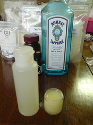 間違ってもレンジでチンしちゃダメだそう) (右)完成した化粧水とハンドクリーム。吃驚す
