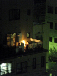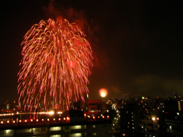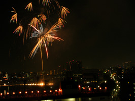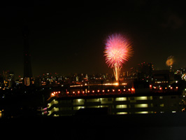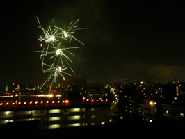 今回は、花火の打ち上げ場所から程近い場所にマンションを持っている友人のお世話になって、屋上から花火見物をさせていただきました。 |