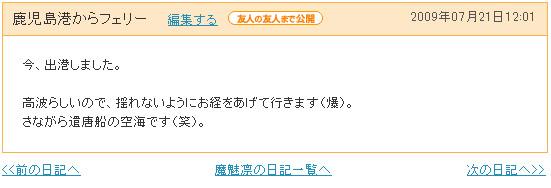 しかも、万が一の事態に備えて(?)携帯からmixiにも↓日記を投稿しておきました。 |