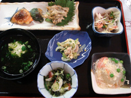 詠んだばかりの川柳を発表なさり、会場の笑いをとっていらっしゃいました(笑) (右)ホテルの夕食 |