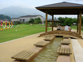 溶岩なぎさ公園内にある足湯と桜島マグマ温泉 |