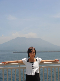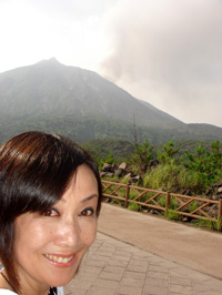 刻一刻と煙の表情が変化する桜島をバックに、ジリジリと日焼け進行中(笑) |