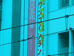 その後、空港行きのリムジンバスに乗り、窓から外の風景を眺めていると、百貨店らしき建物の壁に「ワンコインラン」の垂れ幕が。