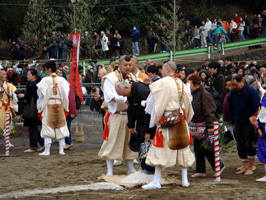 筵(むしろ)に置かれた塩の上に立ちます。山伏は