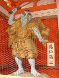 だから、高尾山の中はどこへ行っても天狗だらけ。たとえば↓こんな強面(こわもて)の天狗がいるかと思えば、 |