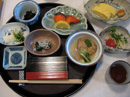こちらが朝食。右は画面に入りきらなかった湯豆腐