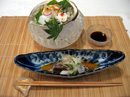 こちらが夕食。さすがは料亭旅館、手が込んでいます。あと3品ほど出ましたが、写真を撮り忘れました