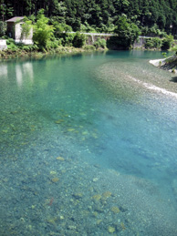 ようやくたどり着いた神社の周辺には、清冽な気が漲り、すぐ脇を流れる天の川(「あまのがわ」と濁らず「あまのかわ」と読むそうです)も驚くほど透明で、一帯はまさに「霊峰」の名に相応しいたたずまいでした。 |
