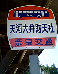 (左)天河神社の入口。鳥居には「大辯才天」と書かれています (右)しかしバス