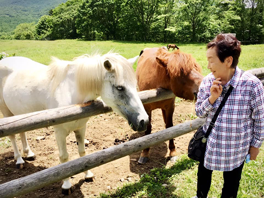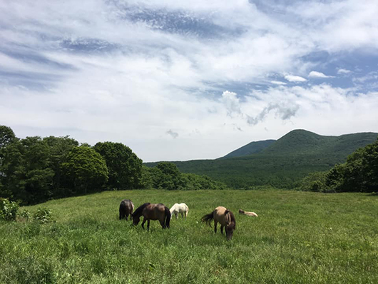 戸隠牧場。夏の間だけ山梨県などから来た馬も預かっているそうです。