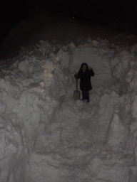 雪上車の後方の雪を、2時間かけて掘り、よう
