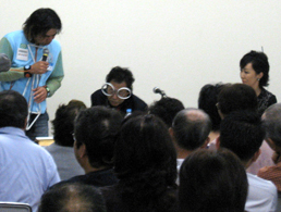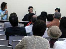 代表の石坂邦子さん、東大教授の原島博さん、国