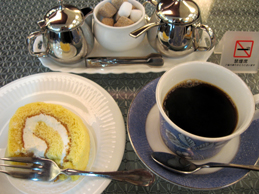 コーヒーを飲もうと立ち寄った喫茶店でサービスして頂いたロールケーキ。どれも美味しく頂きました |