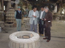 今回の視察中、圧巻は、日本最大のシェア(80%)を誇る梵鐘メーカー老子製作所で見学させていただいた、重さ250トンの梵鐘の鋳造工程でした。