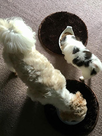 食事中。体重6.6kgのクースケに