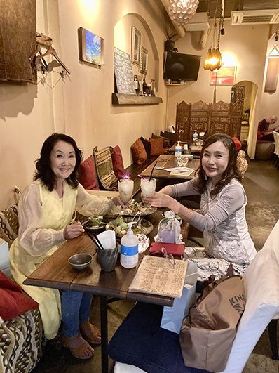 親友でデザイナーの岡正子さんとも何度も二人女子会。