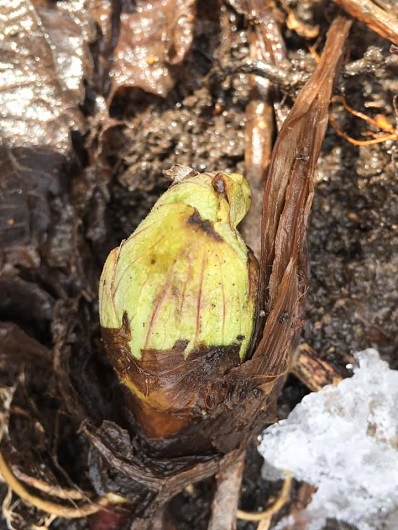 1月の大地から顔を覗かせたフキノトウ。