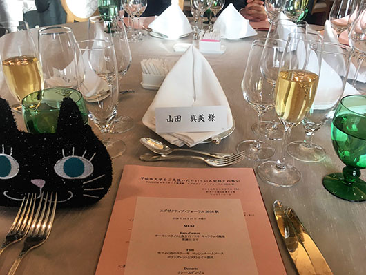 この日は総長先生、副総長先生たちとご一緒に「早稲田、早稲田……」と右手を振りながら校歌まで歌ってまいりました。 |