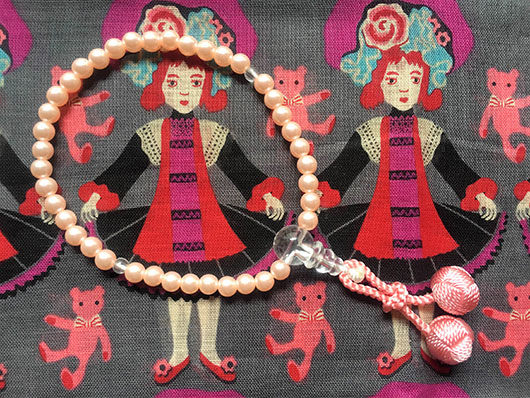 今回は、「法事」に出席するのが生まれて初めての孫娘(1歳8か月)のために、愛らしいピンクの数珠を用意し、その意味を教えてあげました。
