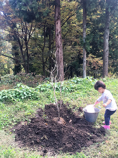 ブースケを埋葬した位置を示す指標として仮植えしてあった