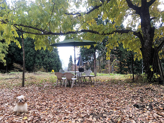 亡きブースケを埋葬したあたりに記念樹の黄木蓮を