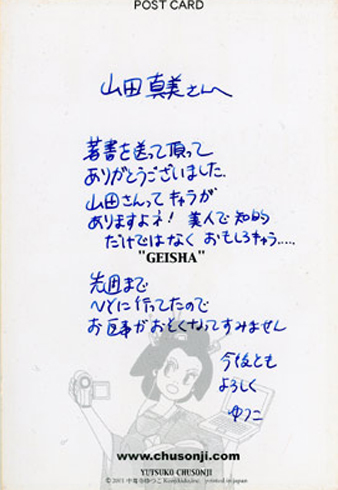今は亡き中尊寺ゆつこさんから頂いたカード。ゆつこさん
