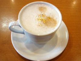 のでご安心ください (右)喫茶店で注文したカフェオレは三が日限定の金粉入りでした♪