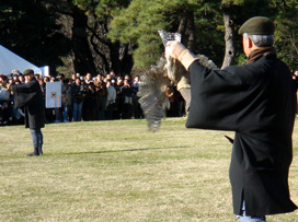 しかも、毎年お正月に行なわれる放鷹術の実演は、浜離宮への入場料(今年は300円)さえ払えば誰でも見学できるのですよ! 来年は皆さまもいかが? |