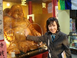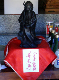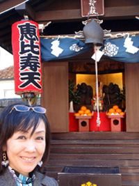 (右)成田山伝法院(真言宗)の恵比寿。海・漁業を司る神道の神さまで、ここ