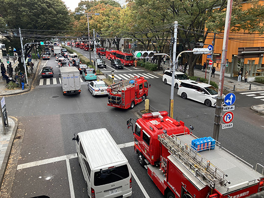 ところ、消防車が集結してきてビックリ。写真に写っていない