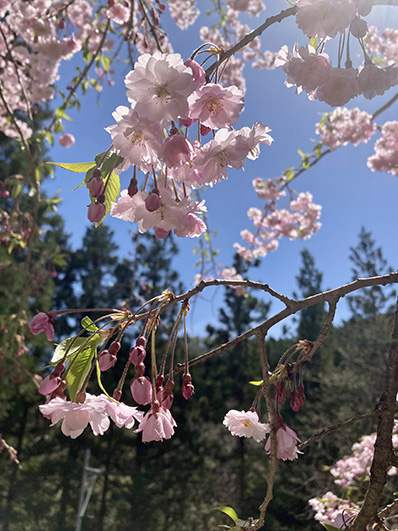 そうやって私が忙しく走り回っているあいだに、今年も山小屋の梅と桜が見事な花を咲かせてくれました。