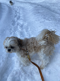 | 雪遊びが大~好きなクースケ。 ドアを開けると自分から飛び出し 新雪の中を転げ回っています♪ 「週刊マミ自身」第694号 |