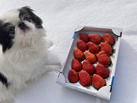 ![]() 千葉にお住まいのお友達・ひとみ ちゃんから届いた高級イチゴを前に 興奮気味のピアノ。 「週刊マミ自身」第724号 |