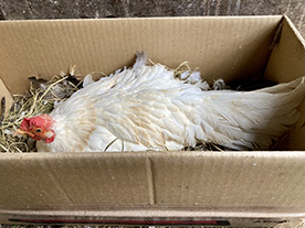 ![]() 「そのへんにあった段ボー ル箱に入り、いつの間にか卵 を抱き始めたメンドリさん。 「週刊マミ自身」第731号 |