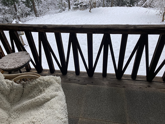 こちらは2階のベランダ。ここから見下ろす雪景色は最高なんです。